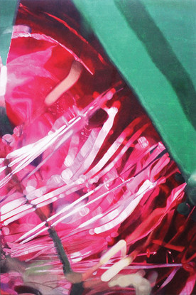 Melalui lanskap yang terkabur, Palito Perak menghadirkan ruang yang mengendapkan jejak dan ingatan. Permukaan visualnya bekerja sebagai lapisan waktu yang mengajak pembacaan kembali terhadap titik mula pengalaman yang telah berubah. Dengan pendekatan yang personal, Erianto ME mengolah tumbuhan dalam ruang kecil sebagai penanda rindu akan alam yang kian menyempit. Warna ceria dan bentuk lembut menyimpan kesadaran tentang ruang hidup yang terus berkurang.