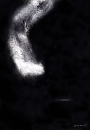 Hari Gita menghadirkan permukaan karya yang menyimpan lapisan perubahan dan waktu. Jejak di sini muncul sebagai akumulasi peristiwa yang terendap perlahan dalam struktur visual. Dalam pendekatan yang dekat dengan keseharian, Indra Dodi menggunakan garis sebagai catatan pengalaman hidup. Gestur visual merekam ritme aktivitas yang berlangsung spontan dan berkelanjutan. Pada wilayah yang lebih fisikal, Jhoni Saputra melibatkan tubuh secara langsung dalam proses penciptaan. Lipatan dan tekanan pada kanvas menyimpan ingatan gerak serta sentuhan.