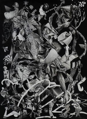 Di tataran yang lebih internal, Abyu Amanda Aldi memaknai ruang pikiran sebagai alam liar yang luas dan bergerak. Proses berkaryanya bersifat meditatif untuk membaca pertanyaan tentang kesadaran dan diri. Sementara itu, Alif Lamra menghadirkan ruang liminal yang memberi jeda pada pemahaman. Fragmen visual dalam karyanya membentuk suasana yang menunda kejelasan dan mengundang perenungan. Melalui keenam seniman ini, cara manusia berada di dunia dibaca sebagai rangkaian pertanyaan yang terus bergerak dan tidak pernah selesai.