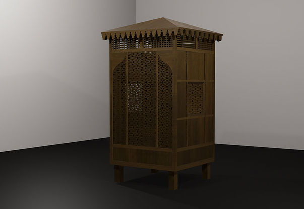 Mujahidin terinspirasi dari ruang masyarabiyyah, semacam patio yang berfungsi sebagai sirkulasi udara dalam rumah, yang menurutnya juga sering digunakan untuk proses bagaimana perempuan melihat dan memandang “calon” atau laki-laki yang datang untuk mengambilnya sebagai istri, sementara si laki-laki tidak bisa melihat si perempuan. Ia melihat bahwa dalam ruang aman seperti ada hak perempuan yang mereka rawat, untuk bisa menentukan pilihan hidupnya. Pengunjung bisa memasuki ruang kecil ini untuk melihat situasi di luar dinding tanpa dapat dilihat dari sisi luar.